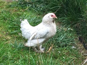 Caption: Chicken in garden