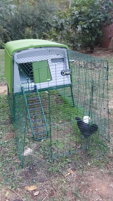 Caption: Omlet Green Eglu Cube Large Chicken Coop and Run in the garden