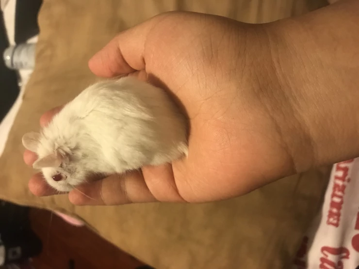 Caption: Hamster being held in hand