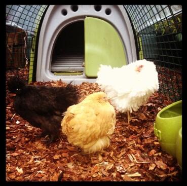 Caption: Hilda, Lilly and Amelia! This photo was taken over seven years ago and Hilda, Lilly and the Eglu are still going strong! Sadly we lost Amilia the Silky