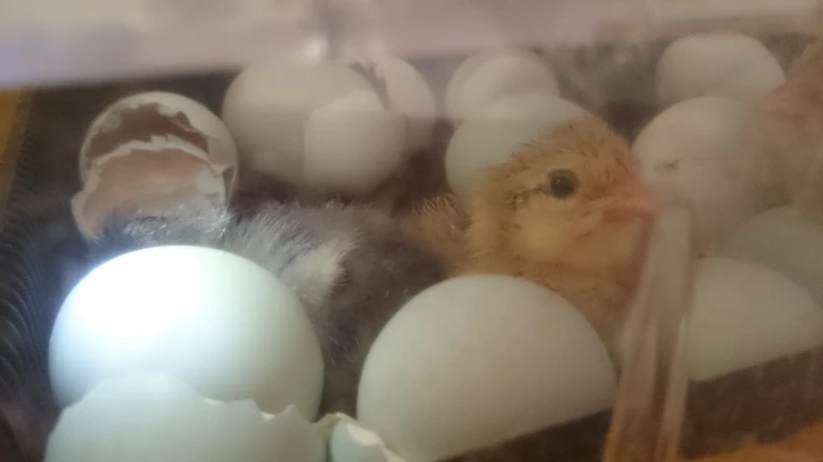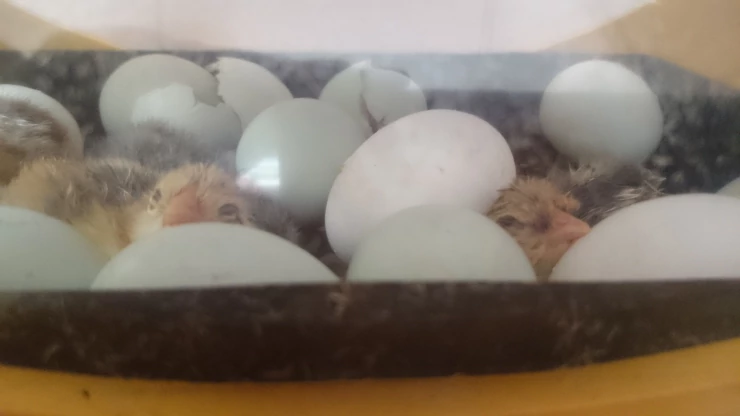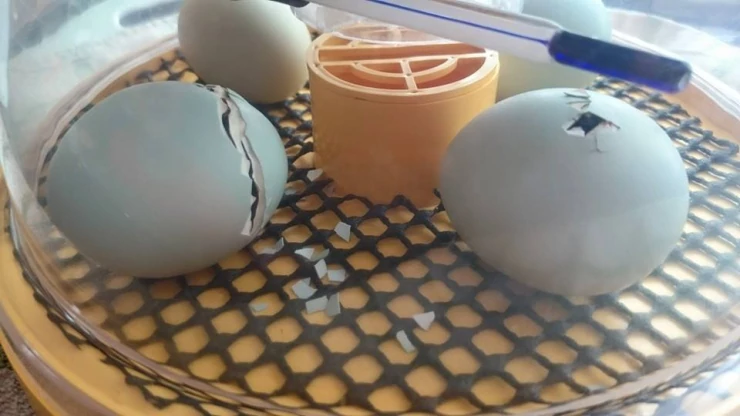 Caption: Araucana eggs hatching