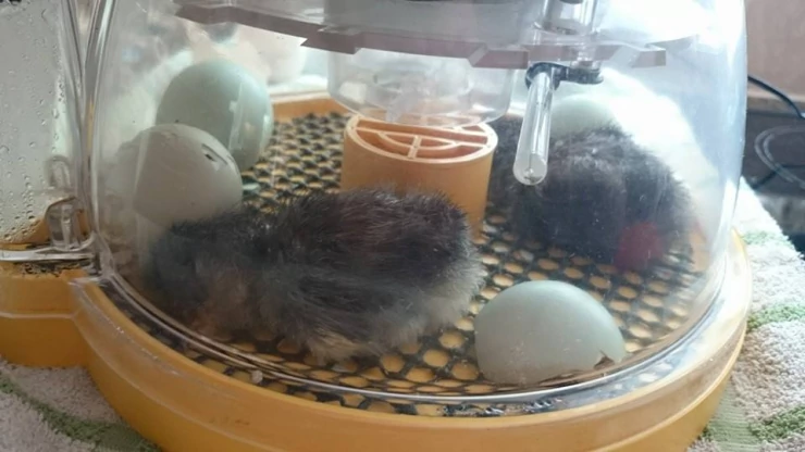 Caption: Incubating Araucana eggs in Mini Eco