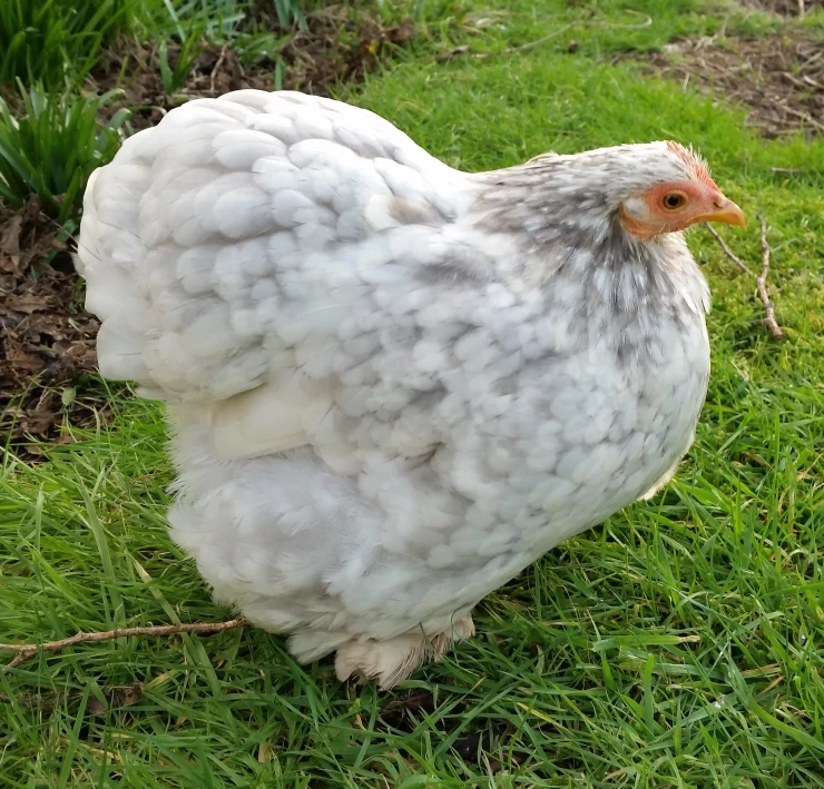 Caption: Lemon cuckoo pekin bantam hen